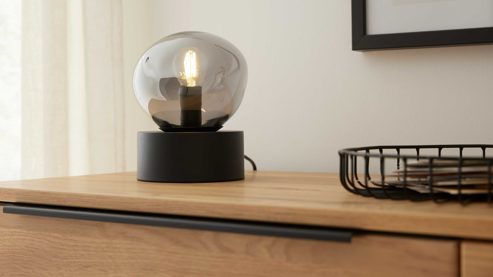 Die Tischlampe ist für E14-Leuchtmittel bis max. 10 Watt geeignet (nicht im Lieferumfang enthalten) und lässt sich bequem über den Schnurschalter bedienen. Damit kombiniert sie Komfort und Design in einem.