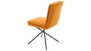 sonnengelber Lederbezug mit einer beigen Kontrastnaht und mattschwarzen Metallfüßen