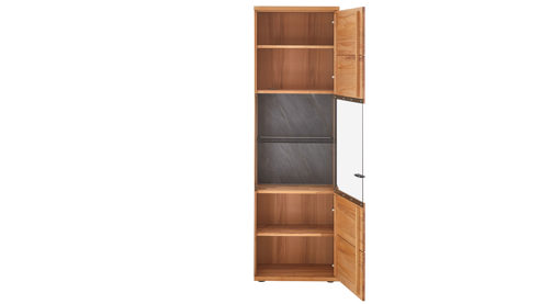 Auch funktional weiß die Vitrine absolut zu überzeugen. Sie verfügt über eine Holztür, die auch mit dem Glaseinsatz versehen ist. Dahinter befinden sich insgesamt fünf Böden - vier aus Holz, einer aus Glas. Durch den sinnvollen Aufbau bietet Ihnen der Schrank viel Stauraum zur Aufbewahrung licht- und staubempfindlicher Gegenstände.