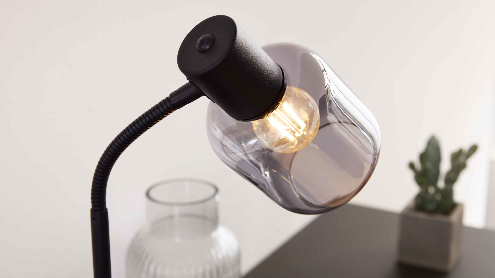 Als stilvolles Nachtlicht im Schlafzimmer sorgt sie für eine gemütliche Atmosphäre. Auf dem Sideboard oder Schreibtisch dient sie als dekoratives Statement und moderne Lichtquelle mit Charakter. Kombiniert mit weiteren Leuchten der Serie entsteht ein einheitlicher, urbaner Industrial-Look, der deinem Zuhause Struktur und Stil verleiht.