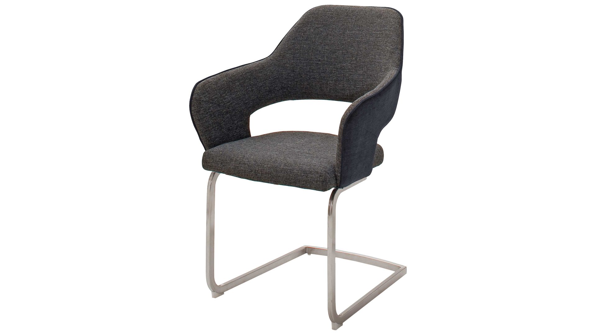 Freischwinger-Sessel Mca furniture aus Stoff in Grau Armlehn-Schwingstuhl Newcastle melangefarbene Bezugkombi MN & Edelstahl