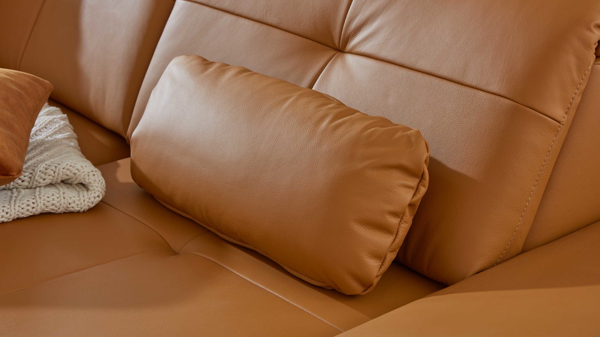 Das Nierenkissen ist ein Zubehör für die verschiedenen Sofas aus dem Modulmaster-Programm MM-PN1044. Mit dem kurkumafarbenen Bezug aus Semi-Anilin-Leder strahlt es moderne Eleganz aus. Das Leder überzeugt mit seiner feinen Struktur und dem angenehm weichen Griff. Auf ca. 58 x 25 cm (LxB) belaufen sich die Maße des attraktiven Kissens, das zum einen dekorativen Charakter hat und zum anderen als praktische Stütze für den unteren Rücken fungiert.