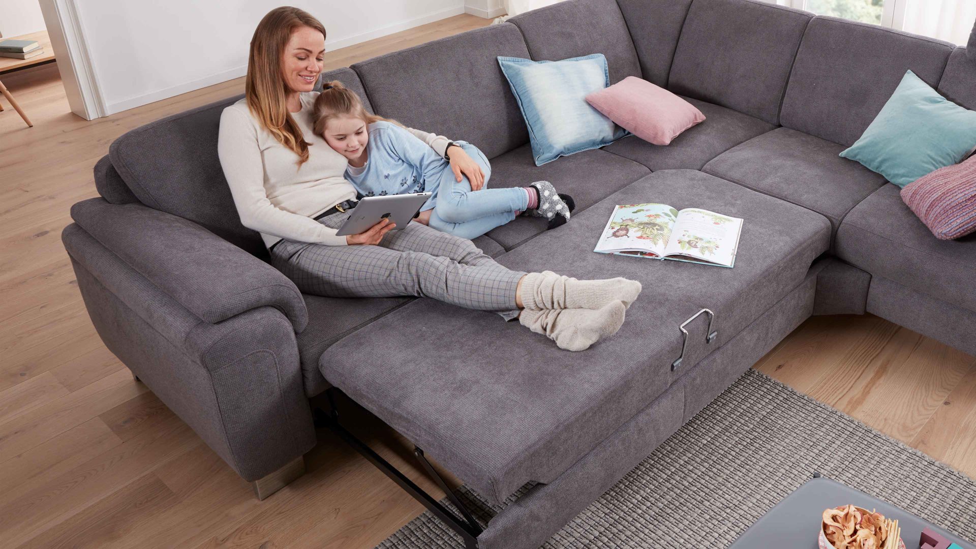 Was die Polsterung betrifft, stehen Federkern und Kaltschaum preisgleich zur Wahl. Gegen Mehrpreis ist auch eine qualitativ erstklassige Boxspringpolsterung lieferbar. Ebenfalls gegen Mehrpreis können Sie die Polstermöbel mit manuellen oder motorischen Funktionen ergänzen.