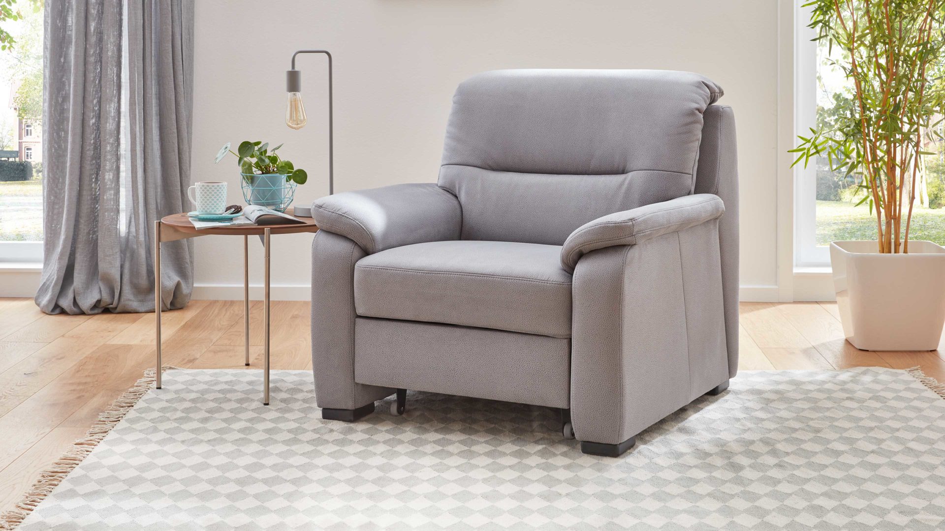 • Die Abbildung zeigt ein Wohnbeispiel, welches auch Dekoration sowie separat erhältliches Zubehör enthält. Im Lieferumfang enthalten ist der Sessel mit Hocker.