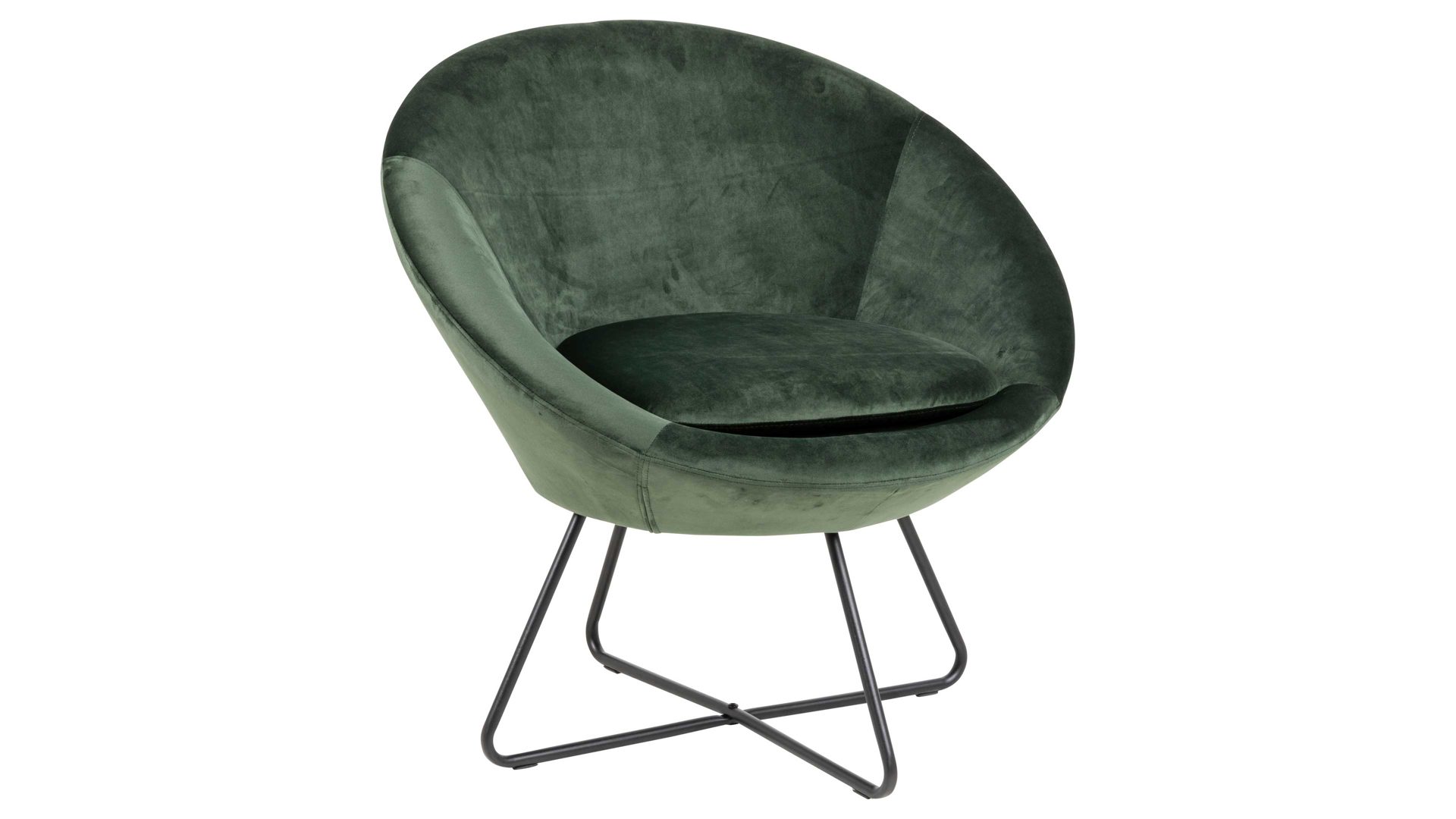 Dieser Loungestuhl zeichnet sich durch sein edles, modernes Design aus und bietet überdies hohen Sitzkomfort. Ein robustes, klassisch-mattschwarz pulverbeschichtetes Metallgestell sorgt für die nötige Standfestigkeit. Den optischen Höhepunkt des Einzelsessels bildet der waldgrüne Samtbezug, der zum einen noble Extravaganz und zum anderen jede Menge Gemütlichkeit ausstrahlt.