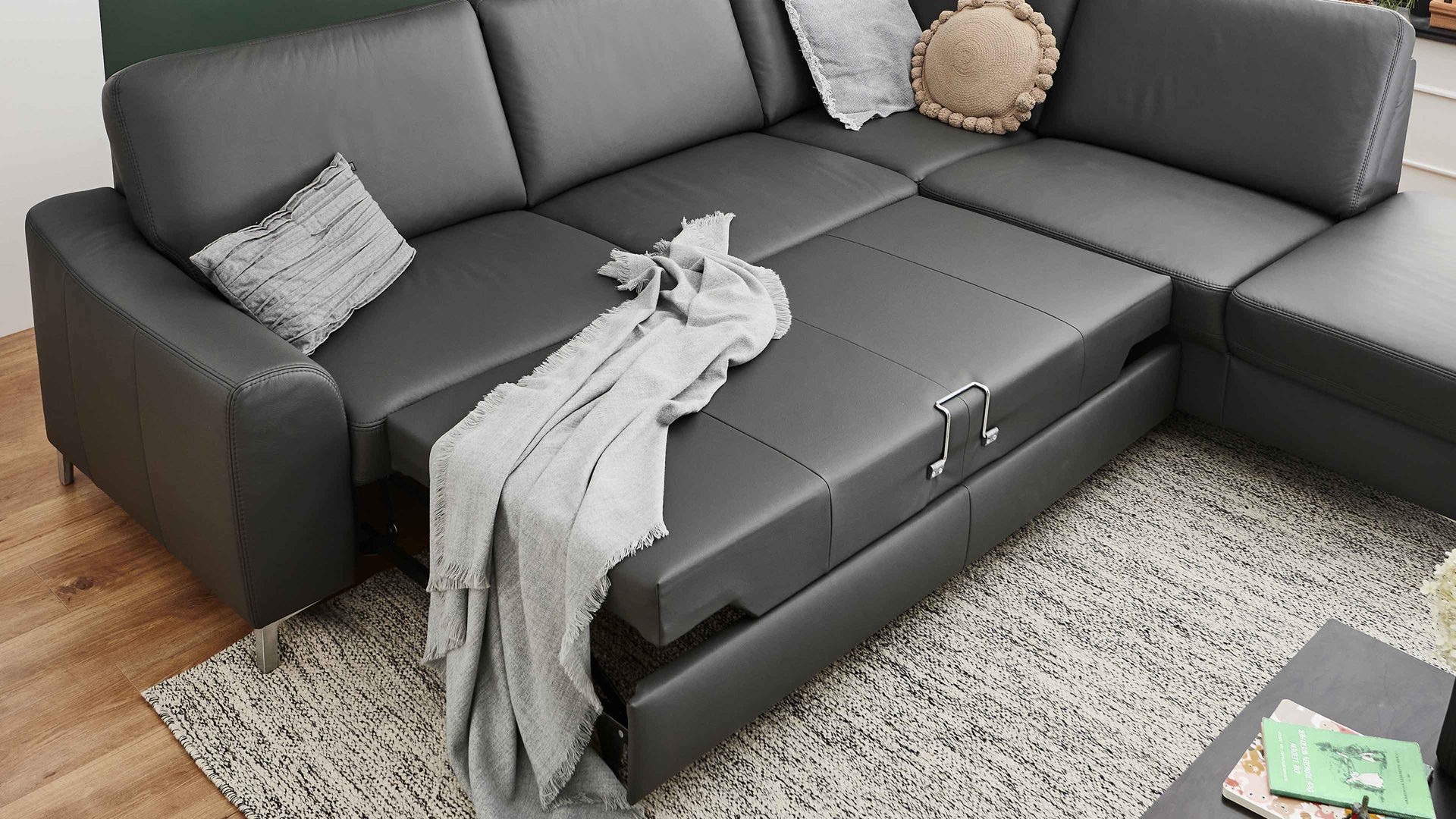 Die manuelle Bettfunktion ist ein Funktions-Mehrpreis für die Dreisitzer aus dem Modulmaster-Polsterprogramm MM-PN1168. Sie ermöglicht es, das jeweilige Sofa in ein bequemes Bett zu verwandeln.