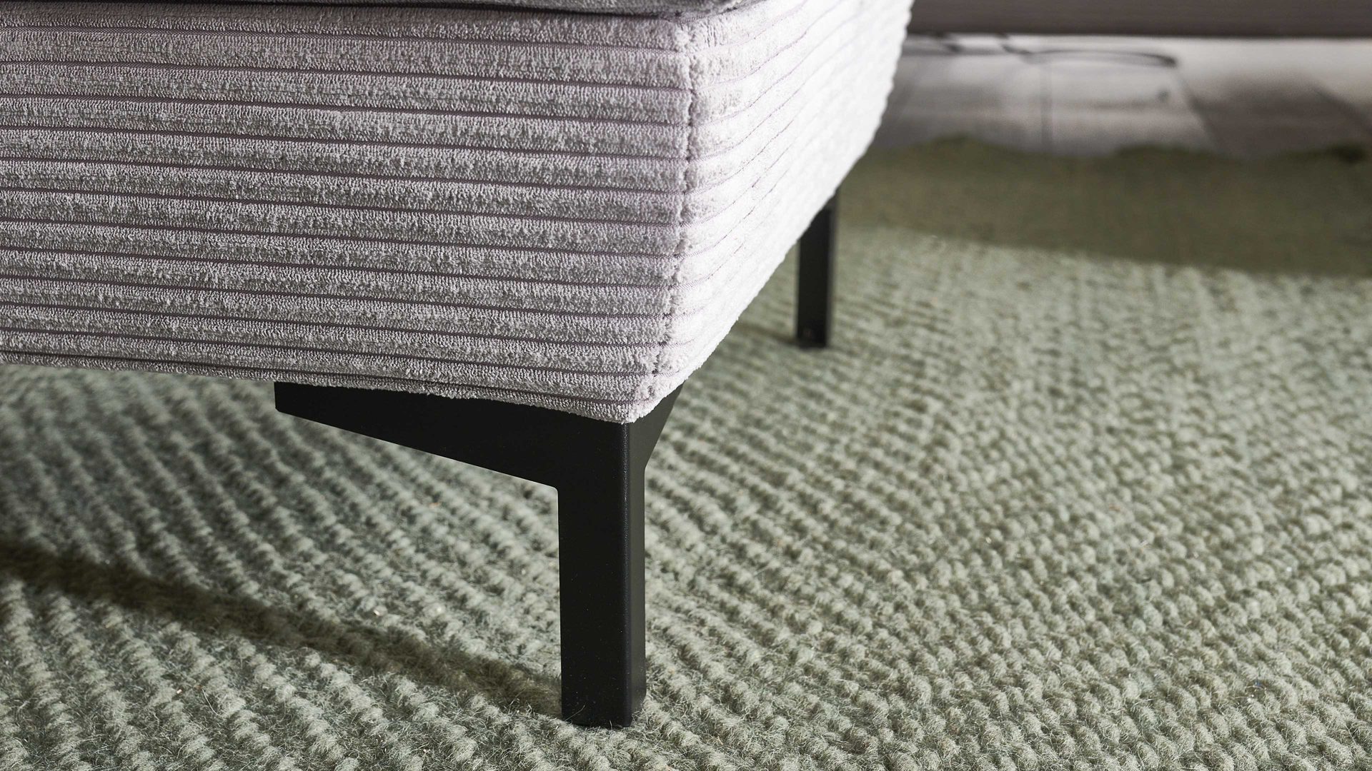platingrauer Breitcordbezug, kombiniert mit mattschwarz pulverbeschichteten Metallfüßen