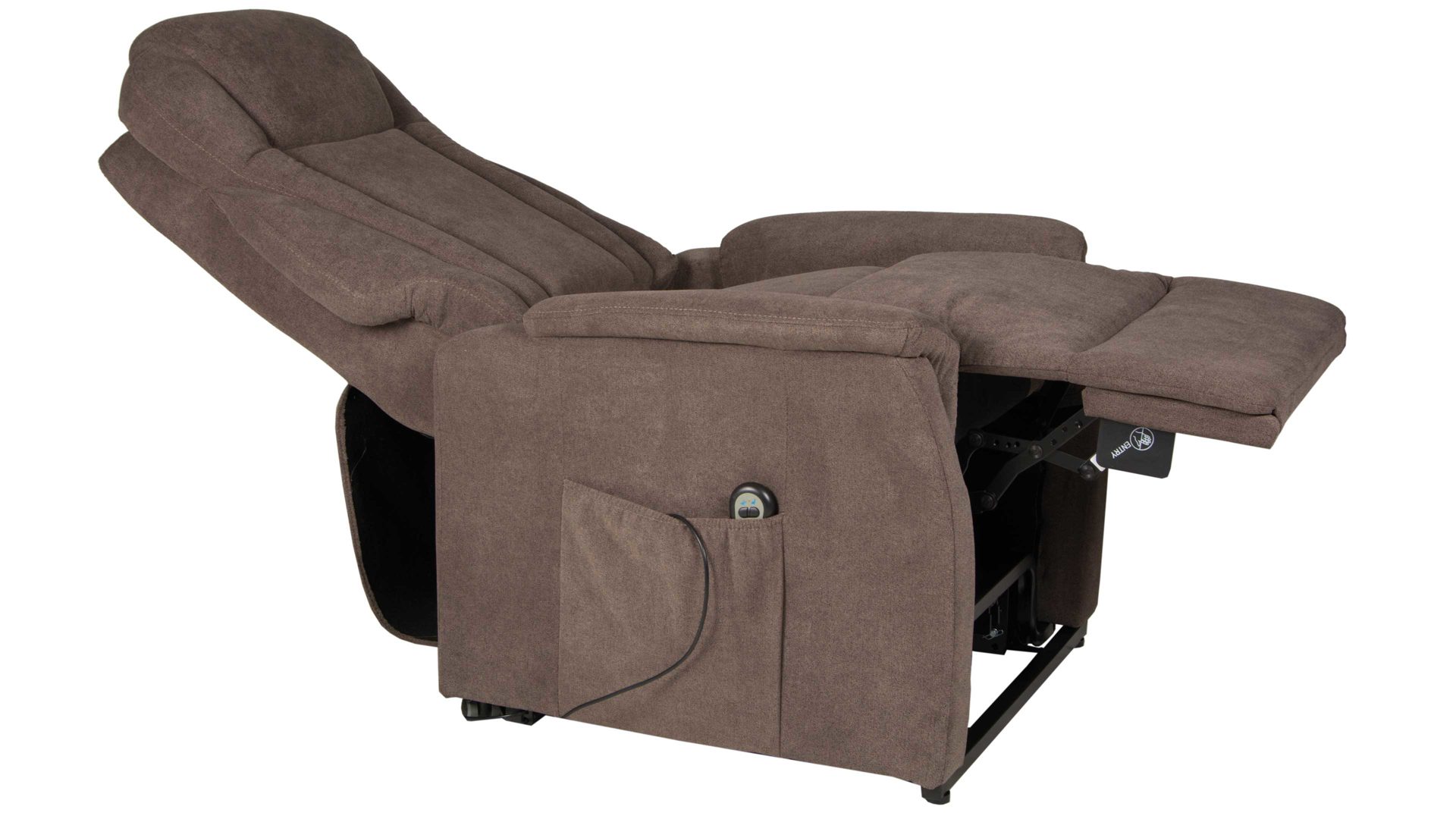 Der Komfortsessel ist mit einem Klemmschutz für Ihre Hände versehen. In puncto Design präsentiert sich der Fernsehsessel schlicht-modern. Er ist mit einem dunkelbraunen Stoff bezogen, der sich dank des gedeckten Farbtons in beliebige Einrichtungskonzepte harmonisch einfügt.