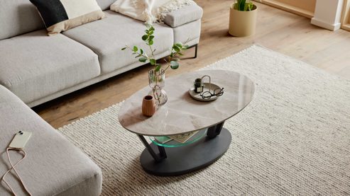 Der Interliving Couchtisch Serie 6230 ist in sechs verschiedenen Plattenfarben erhältlich und optional auch mit Rollen verfügbar. So kannst du deinen Wohnzimmertisch optimal an deinen Einrichtungsstil und deine Anforderungen anpassen.