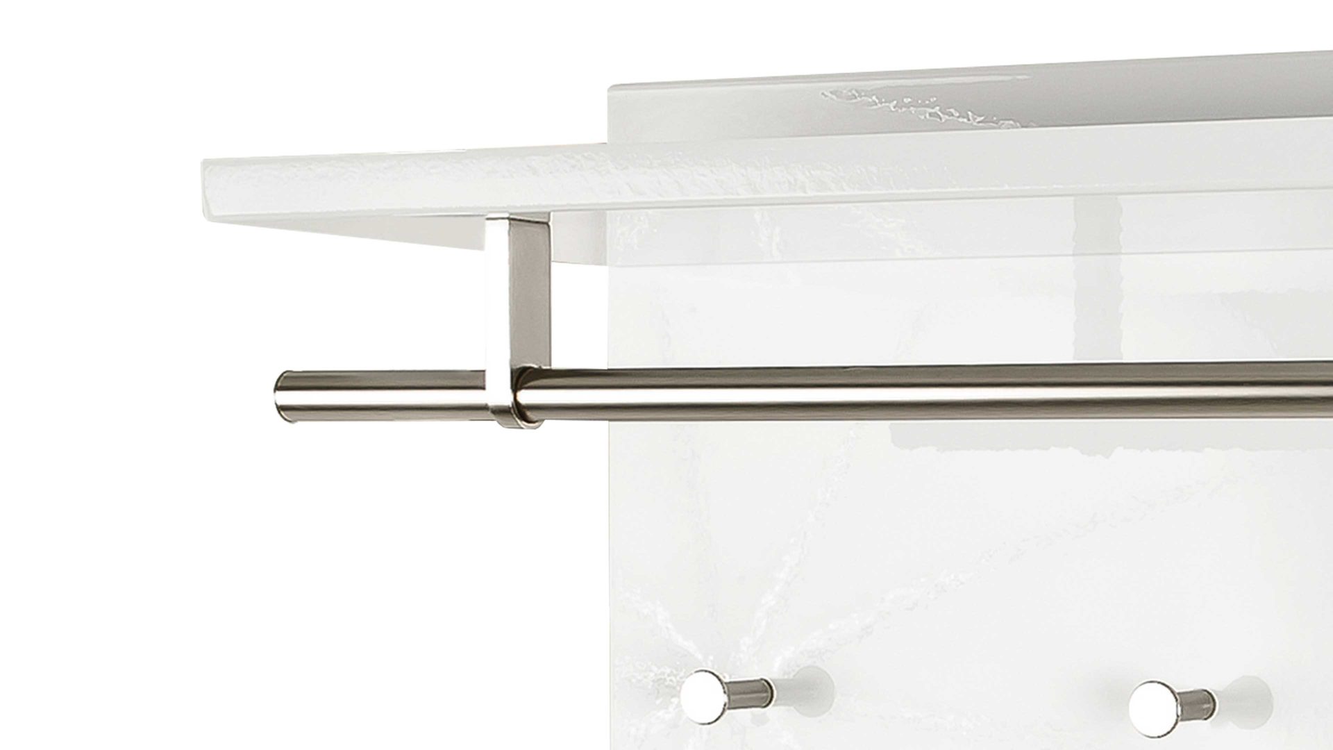 Die Ablagefläche der Garderobenleiste erleichtert Ihnen die ordentliche und griffbereite Aufbewahrung von Mützen, Schals sowie Handschuhen. In Kombination mit einem weißen Sideboard oder einem edelstahlfarbenen Schuhregal kommt diese Wandgarderobe mit Maßen von ca. 75 x 30 x 26 cm (BxHxT) besonders eindrucksvoll zur Geltung. Die mattweißen Oberflächen des Dielenmöbels sind nicht nur widerstandsfähig, sondern auch pflegeleicht.
