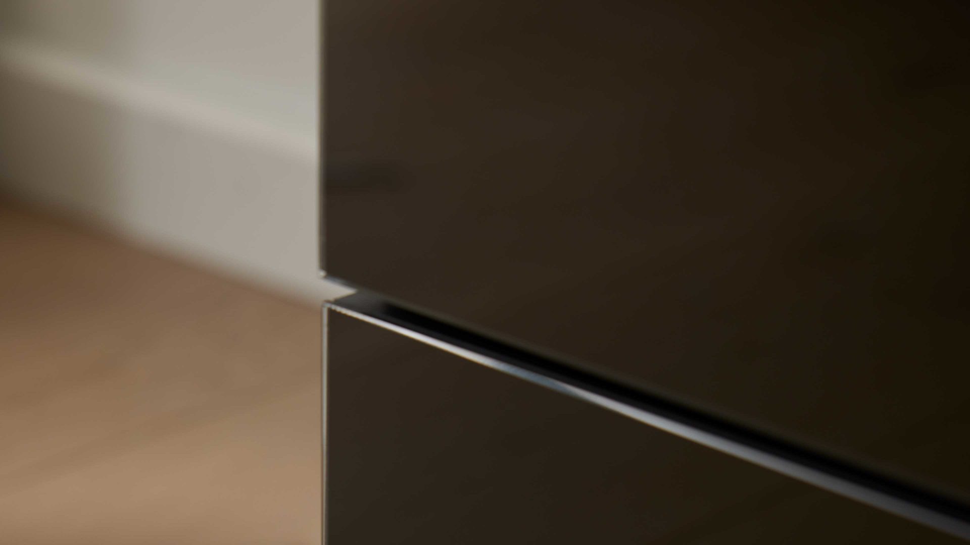 Schwarzglas & Atlantic Eiche - drei Schubladen, Breite ca. 40 cm