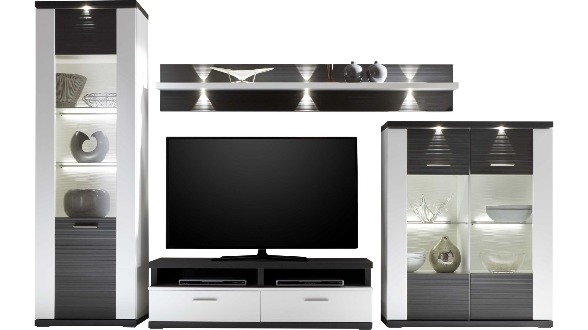 Wohnwand Ideal möbel aus Holz in Schwarz Wohnkombination Manhattan - Wohnwand Weiß & Graphit – dreiteilig, Breite ca. 294 cm