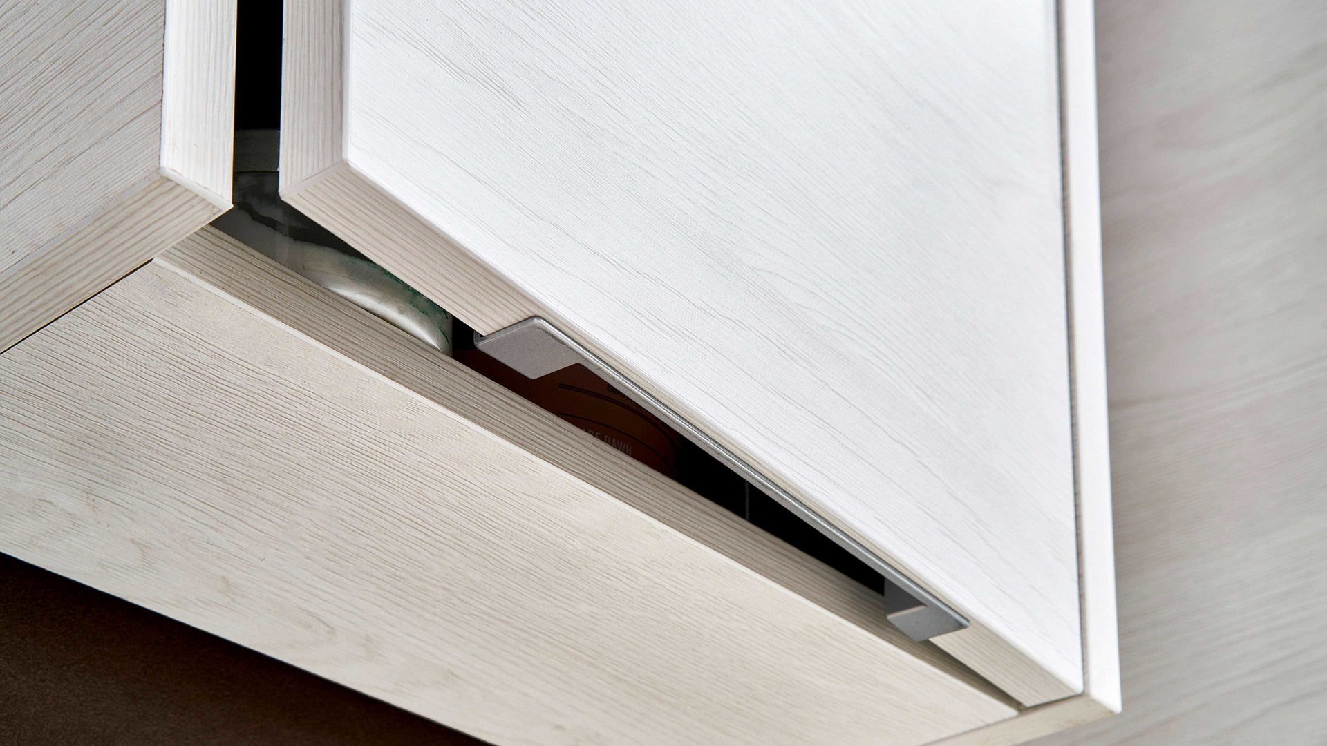 Der pelipal Bad-Midischrank Serie 6040 begeistert mit puristischen Designmerkmalen und hoher funktionaler Stärke. Charakteristisch sind die Fronten und der Korpus in weißer Eiche-Nachbildung. Sie verleihen dem Badmöbel eine zeitlos elegante Ausstrahlung. Für eine stilsichere Abrundung sorgen die matten alufarbenen Griffleisten.