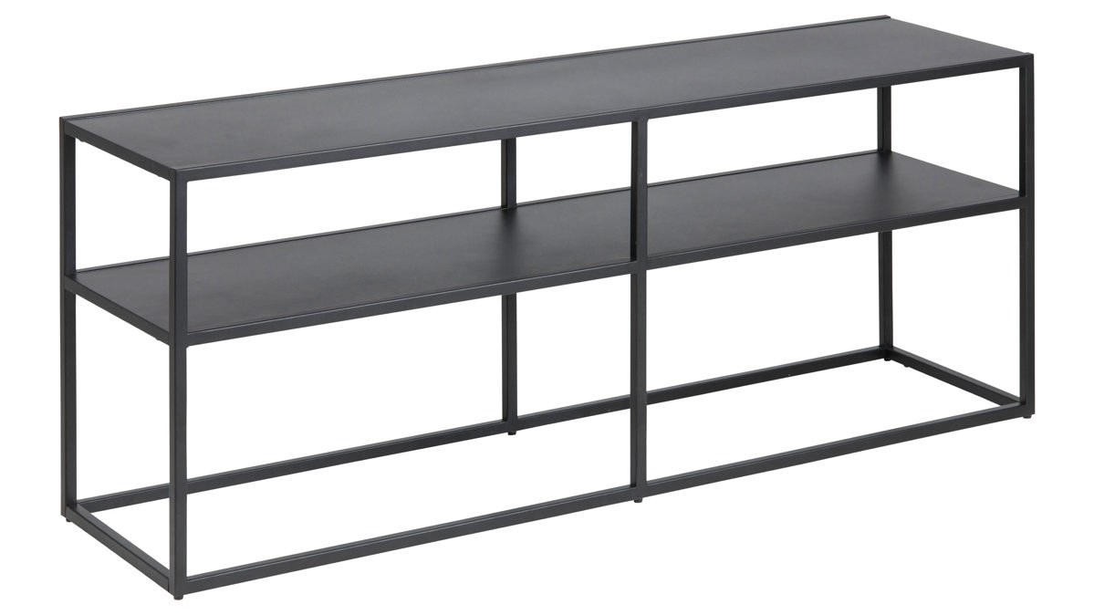 Designt im angesagten Industriestil, bringt dieses Regal ganz besonderen Charme in Ihre Räume. Es besteht aus mattschwarz pulverbeschichtetem Metall und ist dementsprechend enorm robust und langlebig. Zur außergewöhnlichen Ausstrahlung des Metallregals trägt auch die raue Oberfläche bei.