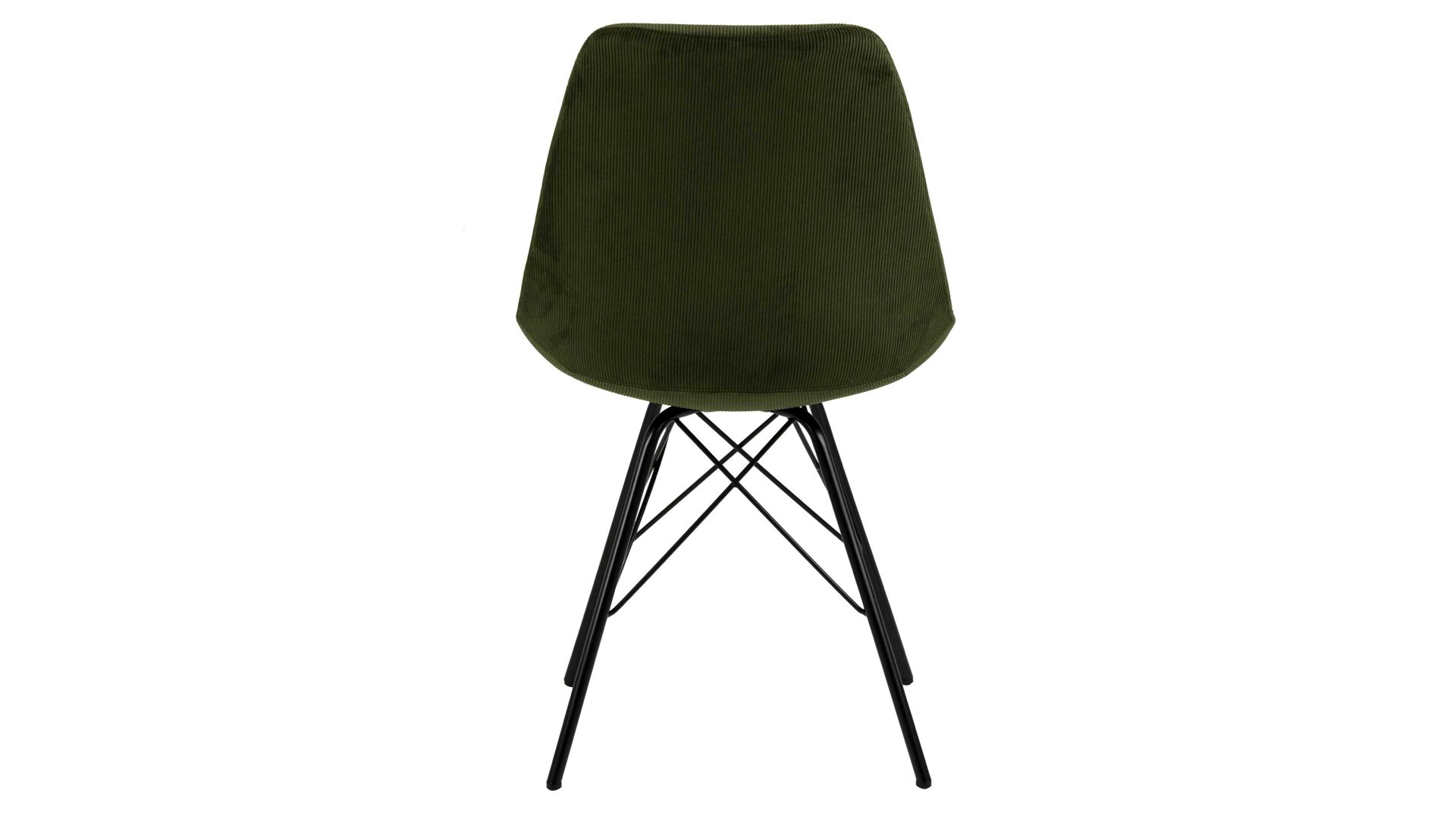 Der Polsterstuhl Eris verkörpert klassische Eleganz. Als stabile, dabei aber wunderbar filigran designte Basis fungiert ein mattschwarz pulverbeschichtetes Stahldrahtgestell. Darauf befindet sich eine olivgrüne Sitzschale aus robustem Kunststoff. Sie ist rundherum mit Feincord bezogen, ebenfalls in Olivgrün. Der angesagte Feincordbezug überzeugt sowohl qualitativ als auch optisch und haptisch.