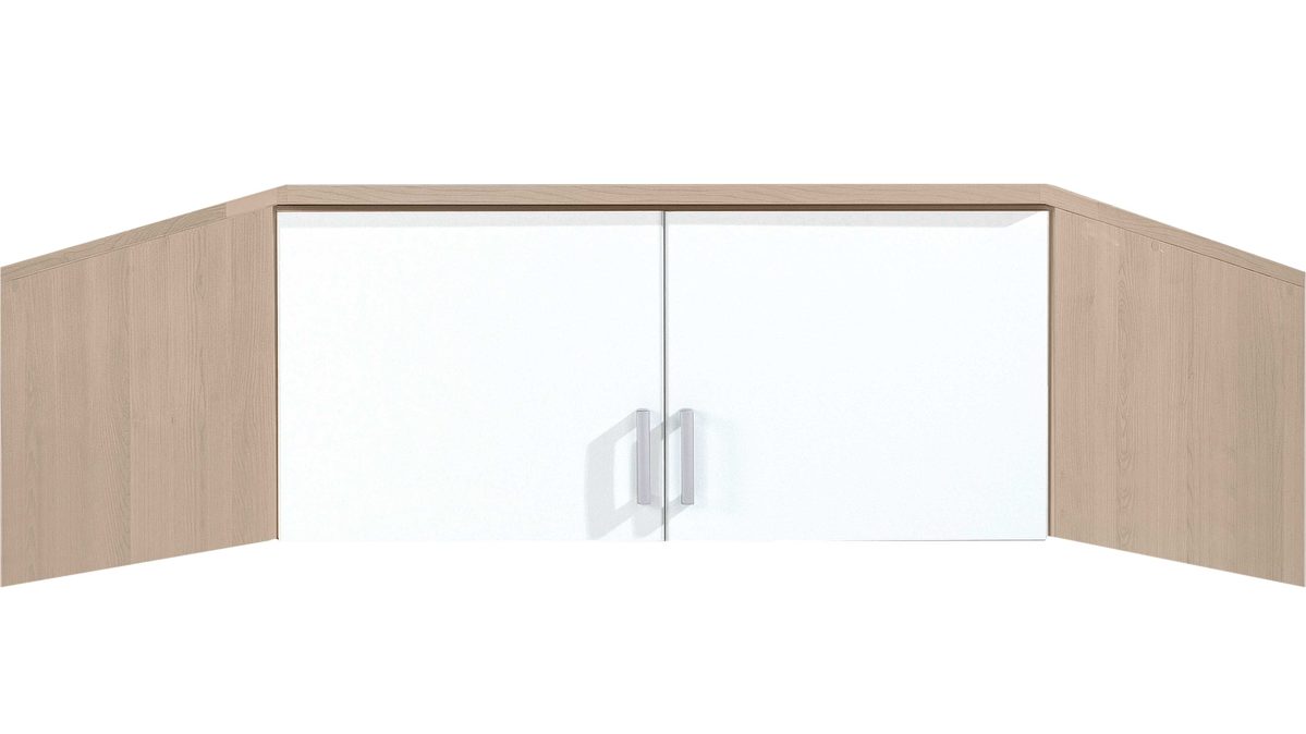 Dieser Aufsatzschrank ermöglicht eine besonders effiziente Nutzung der Räume. Zum einen benötigt dieses Möbelstück keine eigene Stellfläche auf dem Boden, da Sie es auf einem anderen Schrank anbringen können. Zum anderen können Sie so selbst die Ecken eines Raumes sinnvoll ausnutzen. Der Eckkleiderschrank-Aufsatz ist ca. 120 x 39 x 54 cm (BxHxT) groß. Mit einem Klick über das ganze Programm informieren!
