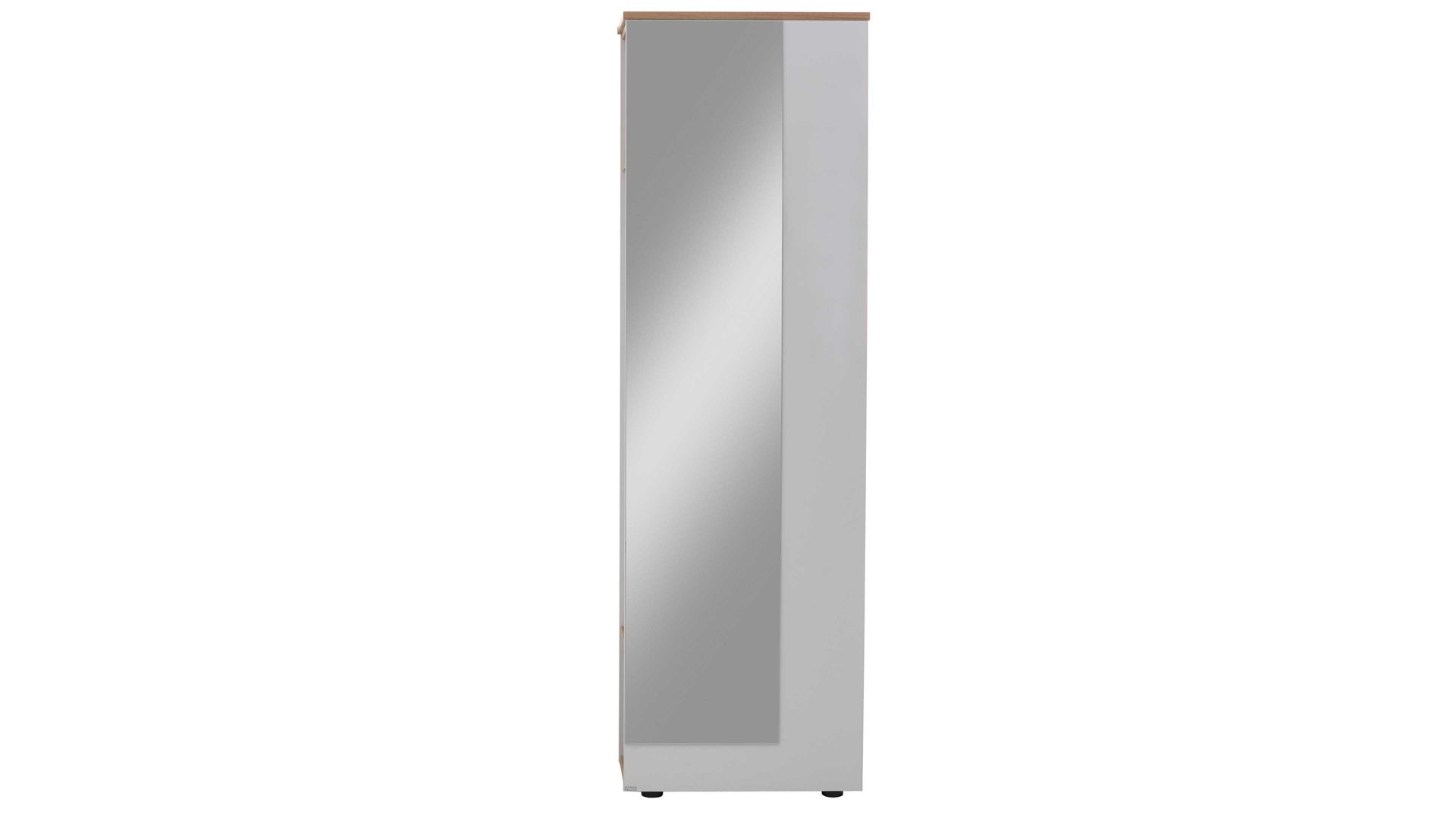 Funktional überzeugt das erstklassig verarbeitete Garderobenelement mit zwei Einlegeböden und einer Kleiderstange. Somit steht Stauraum zur liegenden und hängenden Aufbewahrung von Jacken, Mänteln und anderen Ausgehkleidungsstücken sowie von Accessoires wie Hüten oder Mützen zur Verfügung. An der Außenseite befinden sich drei Holzknöpfe als Garderobenhaken und ein Spiegel - diese Details machen das Möbel noch funktionsstärker. Auf ca. 64 x 206 x 40 cm (BxHxT) belaufen sich die Maße der praktischen Garderobe.