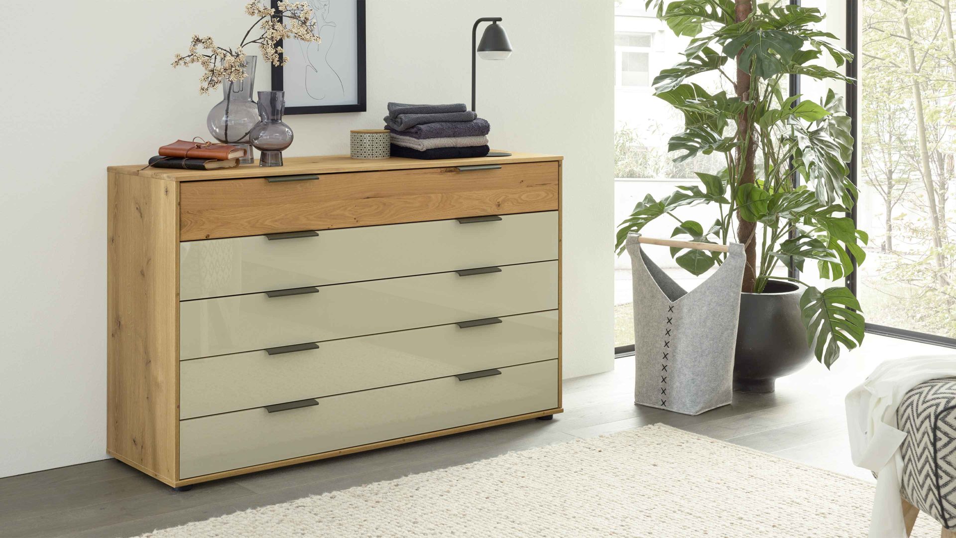 Eiche bianco & Champagner - fünf Schubladen, Breite ca. 141 cm