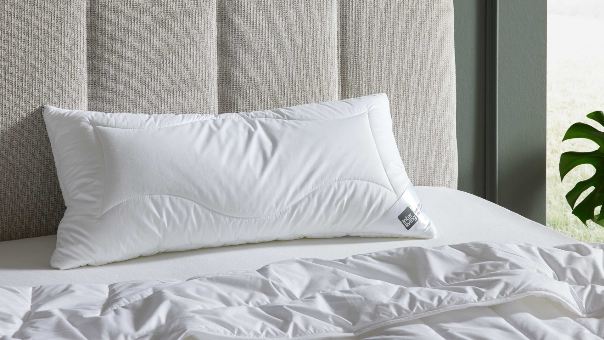 Der feine, weiße Bezug aus hochwertigem, gestepptem Edel-Batist Nm 100 (D) fühlt sich wunderbar glatt und weich an. Im Inneren steckt durchdachte Technologie: Die Füllung besteht außen aus superleichter Hollofil® Spring 3D-Markenfaser und im Kern aus hochbauschigem Faserflaum. Diese Kombination sorgt für ein elastisches, anschmiegsames Liegegefühl – mit optimaler Unterstützung für Kopf und Nacken.