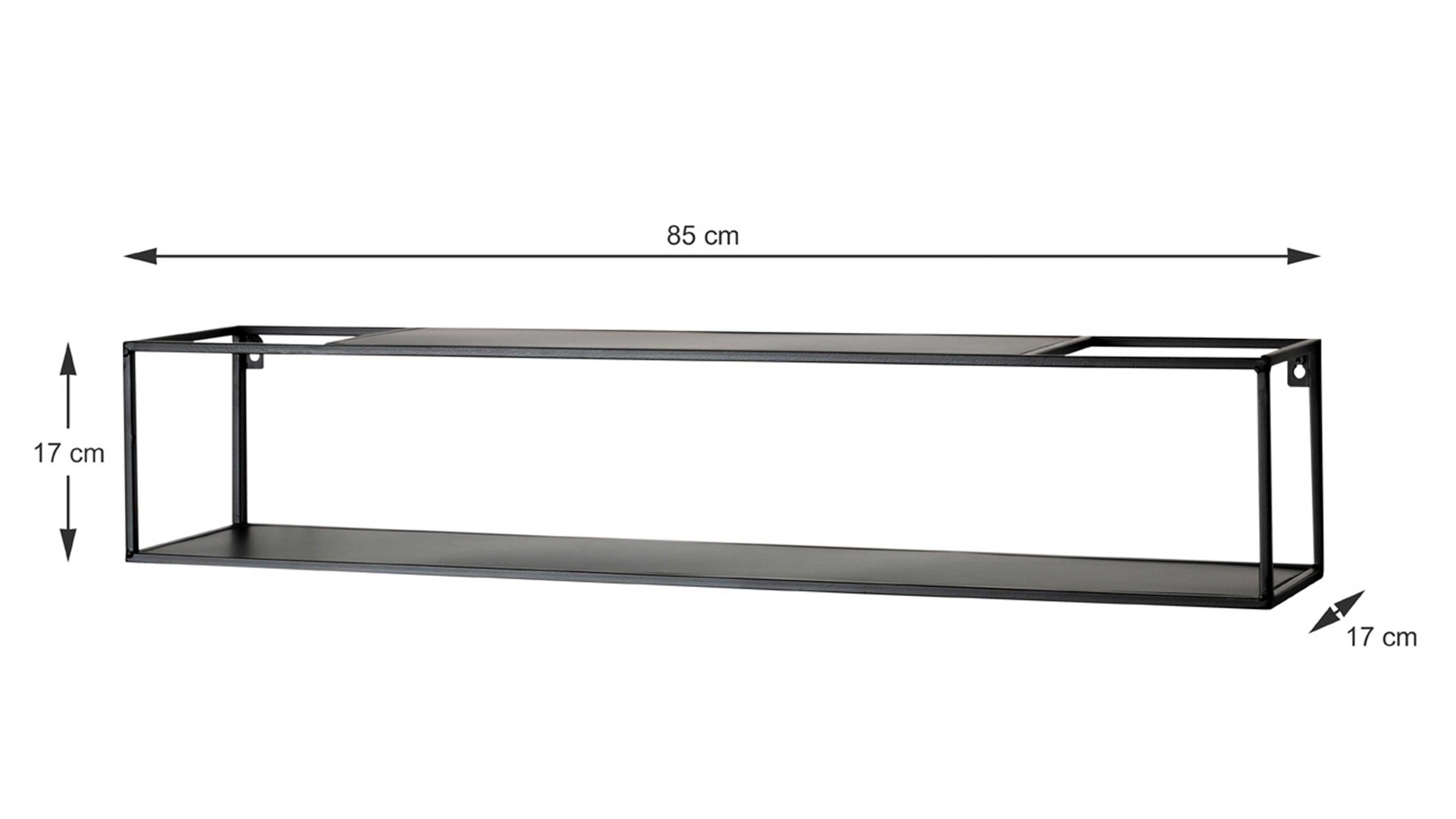 Die Maße des kleineren Regals betragen ca. 75 x 14 x 17 cm (LxHxT), während sich die des größeren auf ca. 85 x 17 x 17 cm (LxHxT) belaufen. Praktischen Stauraum für Deko, CDs und sonstige Gegenstände bieten sowohl die obere als auch die untere Platte beider Wandboards.