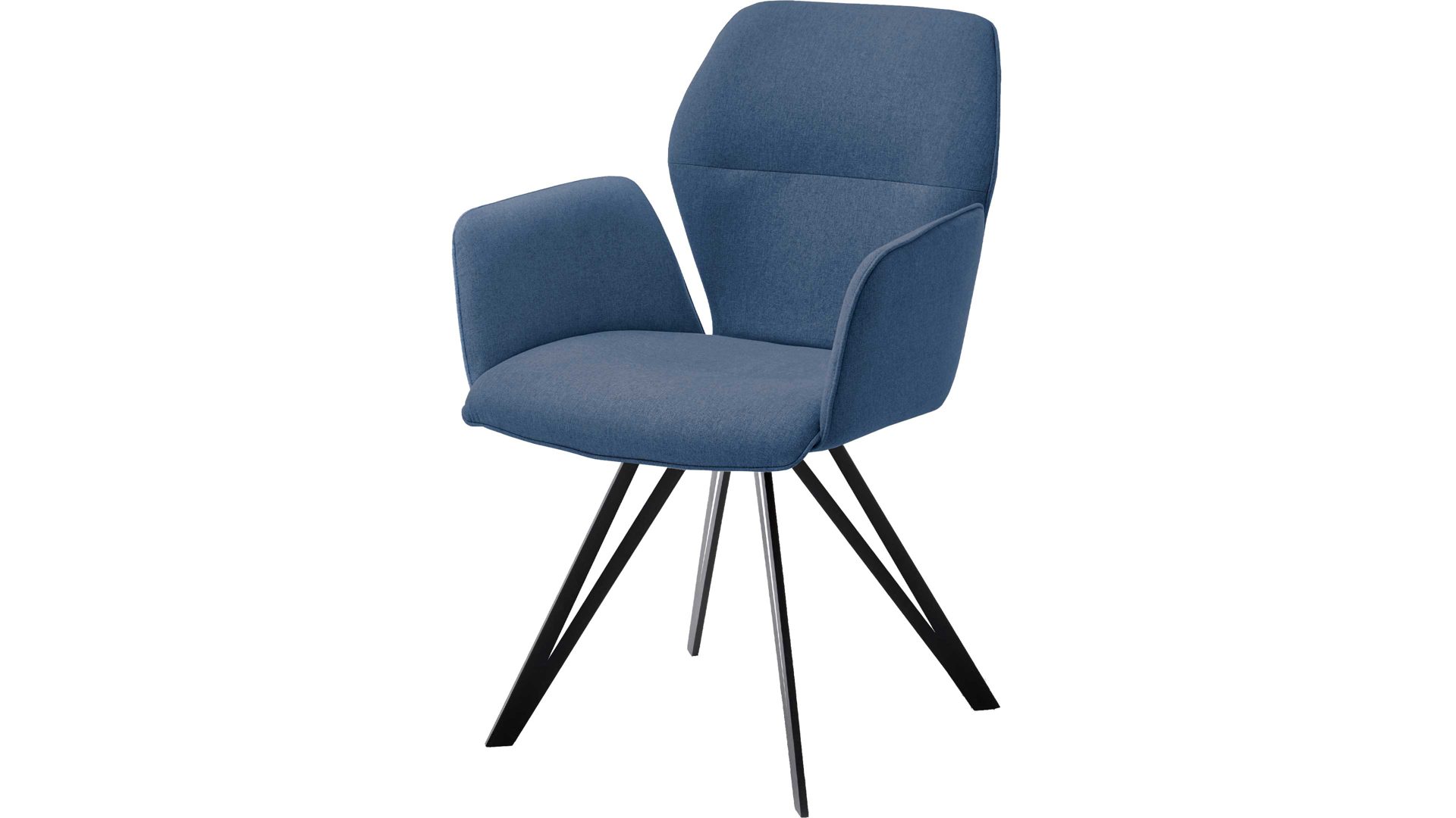 Der Armlehnstuhl Merlot präsentiert sich modern, kreativ und stilvoll designt. Er kombiniert einen blauen Webstoffbezug mit einem schwarz pulverbeschichteten Vierfuß-Flachstahlgestell. Letzteres sorgt für eine stabile Basis sowie für puristisch-elegantes Flair im Esszimmer. Dazu trägt auch der tiefe Farbton des hochwertigen, angenehm weichen Stoffbezugs bei. Überdies unterstreicht die spezielle Formensprache des Gestells die originelle Ausstrahlung des Vierfußstuhls.