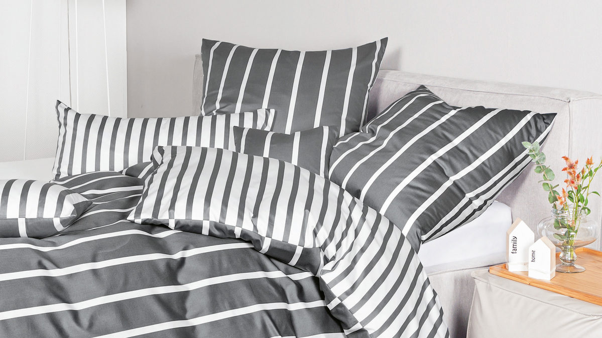 Mit der anthrazitfarbenen Janine Bettwäsche modernclassic 39028 kommen Liebhaber moderner Streifenprints voll auf Ihre Kosten. Der Bettbezug in der Größe ca. 135 x 200 cm, Kissen ca. 80 x 80 cm bringt Leichtigkeit in Ihr Schlafzimmer, während die geradlinige Musterung der Bettwäsche für Struktur sorgt. Mix and Match: Die Bettwäsche ist als Wendebettwäsche konfektioniert und damit stilvoll kombinierbar zu jeglichen Einrichtungsstilen.