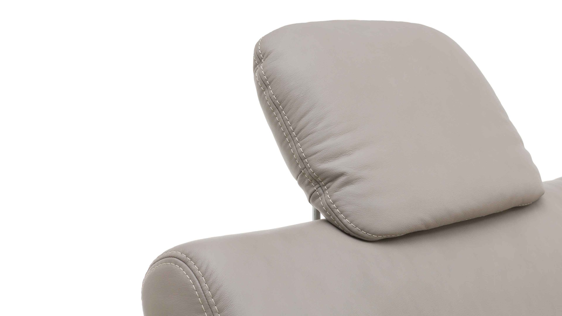 Die Comfort-Kopfstütze CKS fungiert als Mehrpreis-Zubehör für diverse Elemente aus der Modulmaster-Polsterserie MM-PN1102. Sie ist mit granitfarben pigmentiertem Glattleder bezogen und mit einer Kopfstützenvorrichtung aus verchromtem Metall ausgestattet.