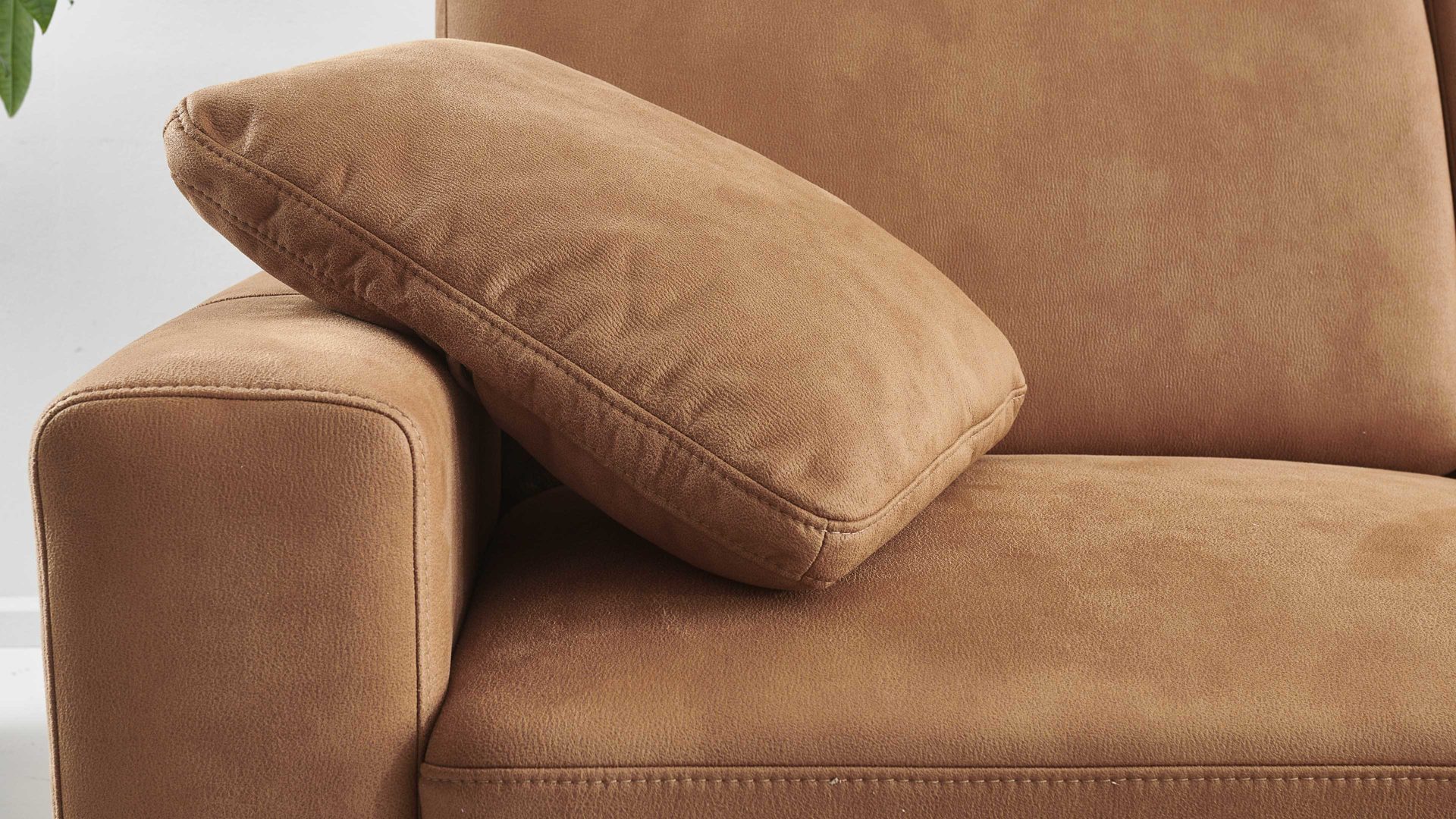 Das ca. 50 x 50 cm (BxL) große Armlehnenkissen ist ein praktisches Mehrpreis-Zubehör für die Sofas im zimtfarbenen Mikrofaserbezug aus dem Programm Modulmaster MM-ZE1001. Es verleiht der jeweiligen Couch ein Plus an Gemütlichkeit und kann als Armablage, aber auch als Kopfkissen bei einem Nickerchen verwendet werden.