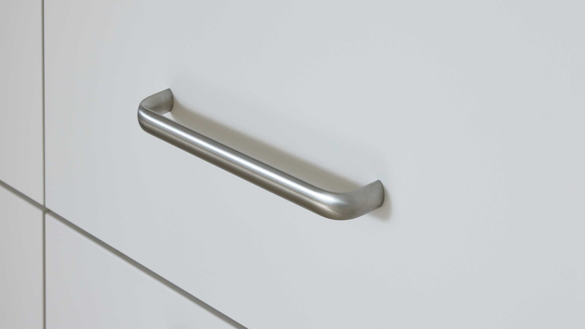 Die Edelstahl-Bügelgriffe setzen dezente, moderne Akzente und sorgen gleichzeitig für eine komfortable Handhabung im Alltag.