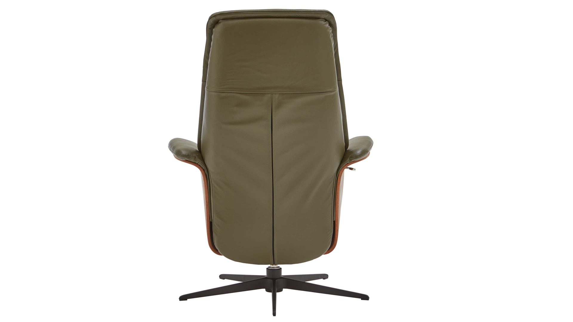 Sie sind auf der Suche nach einem schönen und sehr bequemen Sessel? Dann ist dieser Relaxsessel bzw. Drehsessel mit einem strapazierfähigen dunkelgrünem Lederbezug, der Sitzschale in geöltem Nussbaum und einem modernen Sternfuß aus schwarzem Metall genau das richtige Sitzmöbel für Sie. Nutzen Sie die manuell verstellbare Relaxfunktion und stellen Sie den Ledersessel so ein, dass Sie komfortabel lesen und fernsehen können.
