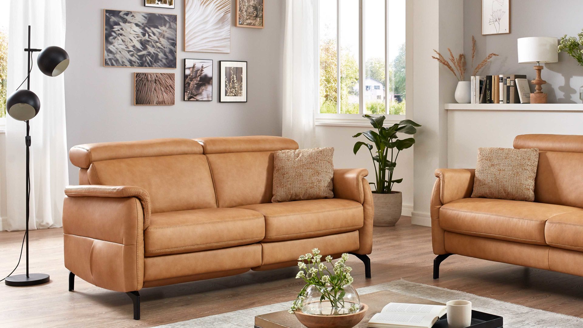 Der Zweisitzer aus dem hochwertigen Polsterprogramm OrthoSedis 6.0 ist mit edlem honigfarbenen Leder bezogen. Robuste mattschwarze Metallfüße sorgen für einen stabilen Stand. Sowohl die Materialien als auch die Farben harmonieren perfekt und verleihen dem Sofa eine moderne und elegante Ausstrahlung. Durch das zeitlose Design fügt sich die Couch in verschiedene Einrichtungsstile passend ein.