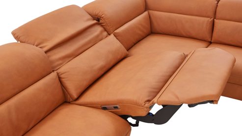 Die Beinauflage fährt auf Sitzhöhe und der Sitz zusätzlich einige Zentimeter nach oben sowie nach vorn, In dieser Relaxposition bleibt der Rücken wandfrei.