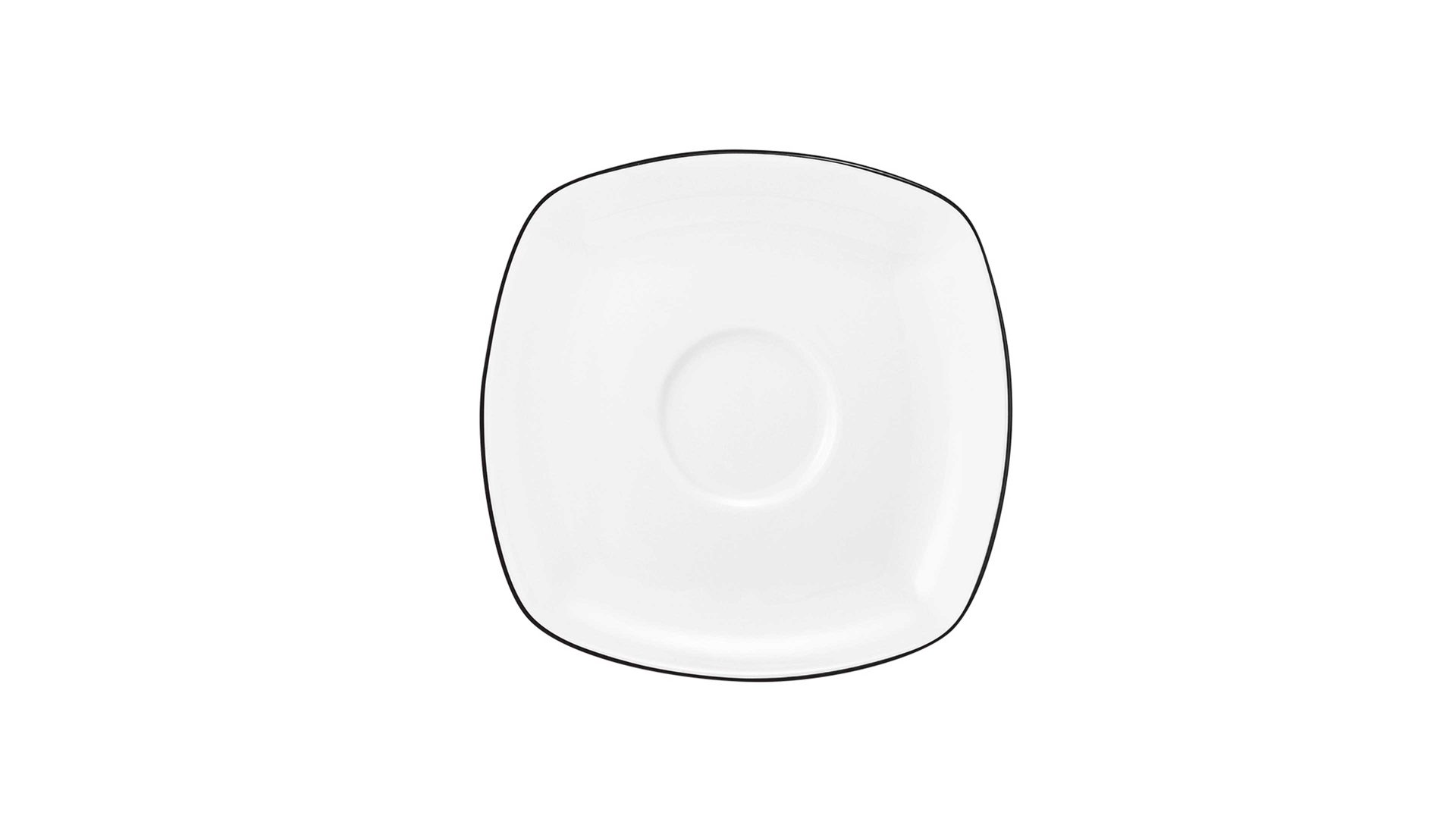 Seltmann Lido | eckiger Kombi-Unterteller | weißes Hartporzellan mit filigranem schwarzen Rand | spülmaschinenfest | mikrowellengeeignet | stapelbar | backofenfest | Durchmesser ca. 15 cm | Maße ca. 15 x 2 x 15 cm (BxHxL) | Made in Germany | individuell kombinierbare Geschirrserie