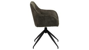 Dieser Armlehnstuhl verbindet ein modernes, elegantes Design mit einem besonders hohen Sitzkomfort. Darüber hinaus ist er hochwertig verarbeitet. Das mattschwarz pulverbeschichtete Metallgestell mit rauer Oberfläche sorgt für einen stabilen Stand und bildet auch optisch eine gelungene Basis für den Schalenstuhl. Als Highlight fungiert der feine Stoffbezug in trendigem Olivgrün. Die Steppnähte der Sitz- und Rückenfläche setzen einen attraktiven Akzent.