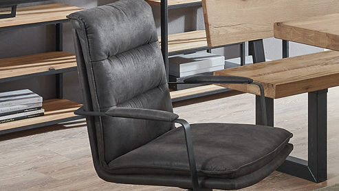 anthrazitfarbener Mikrofaserbezug und mattschwarzes Eisen