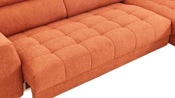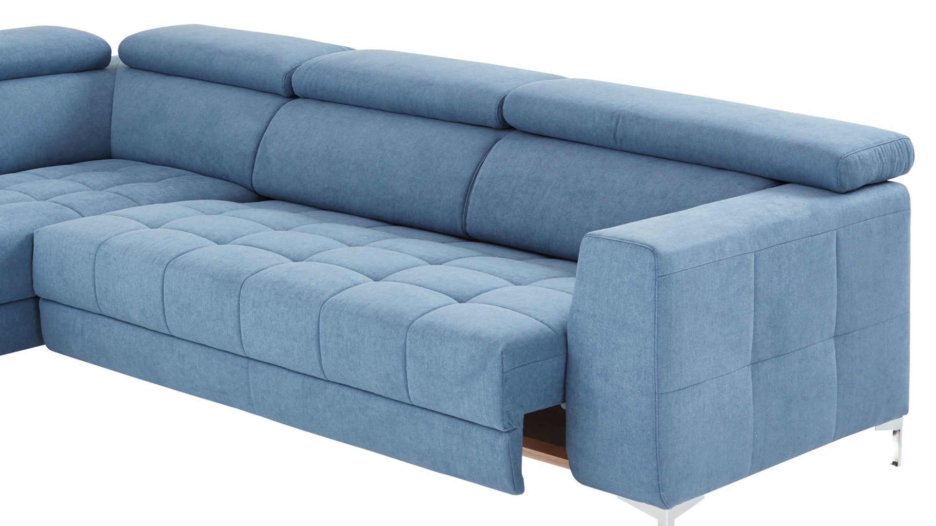 Des Weiteren können Sie zwischen zwei Fußfarben wählen und die Polsterecke ist standardmäßig mit einer Kopfteilverstellung ausgestattet.