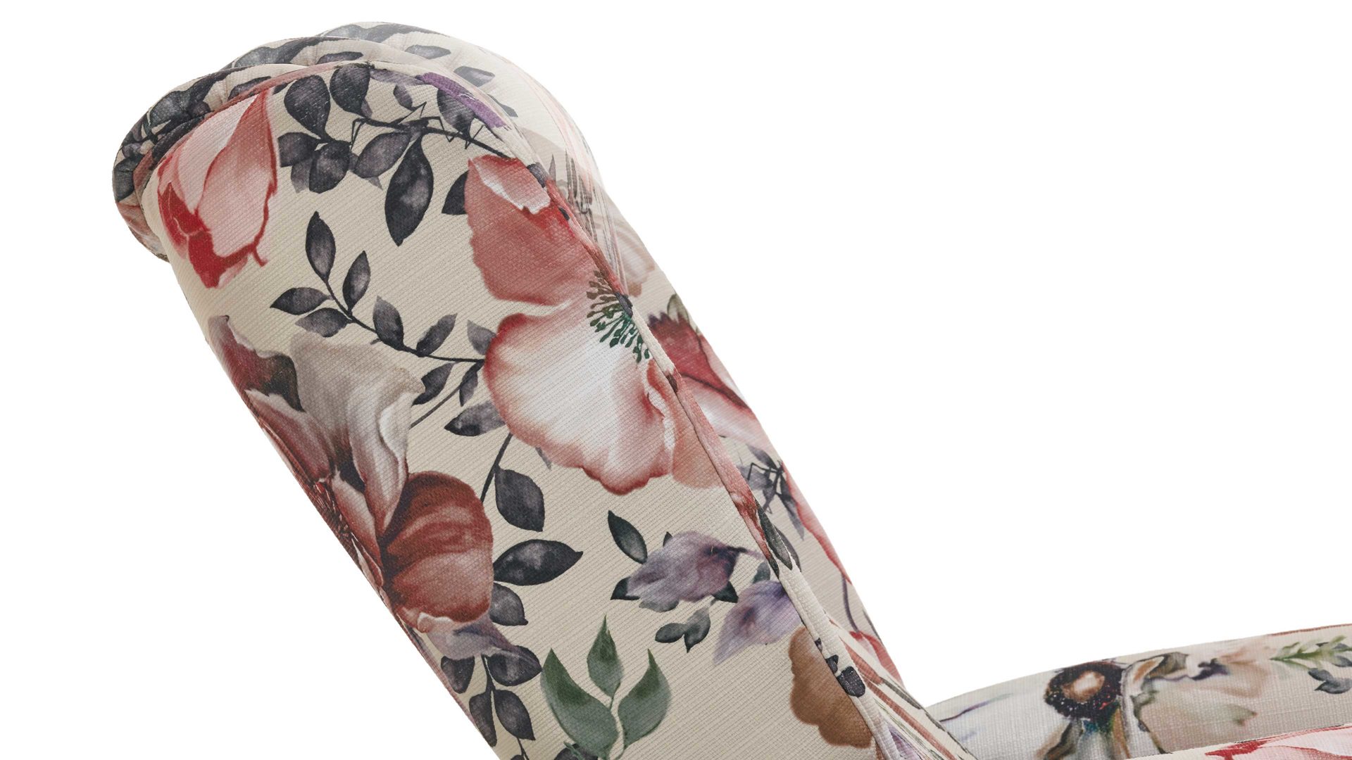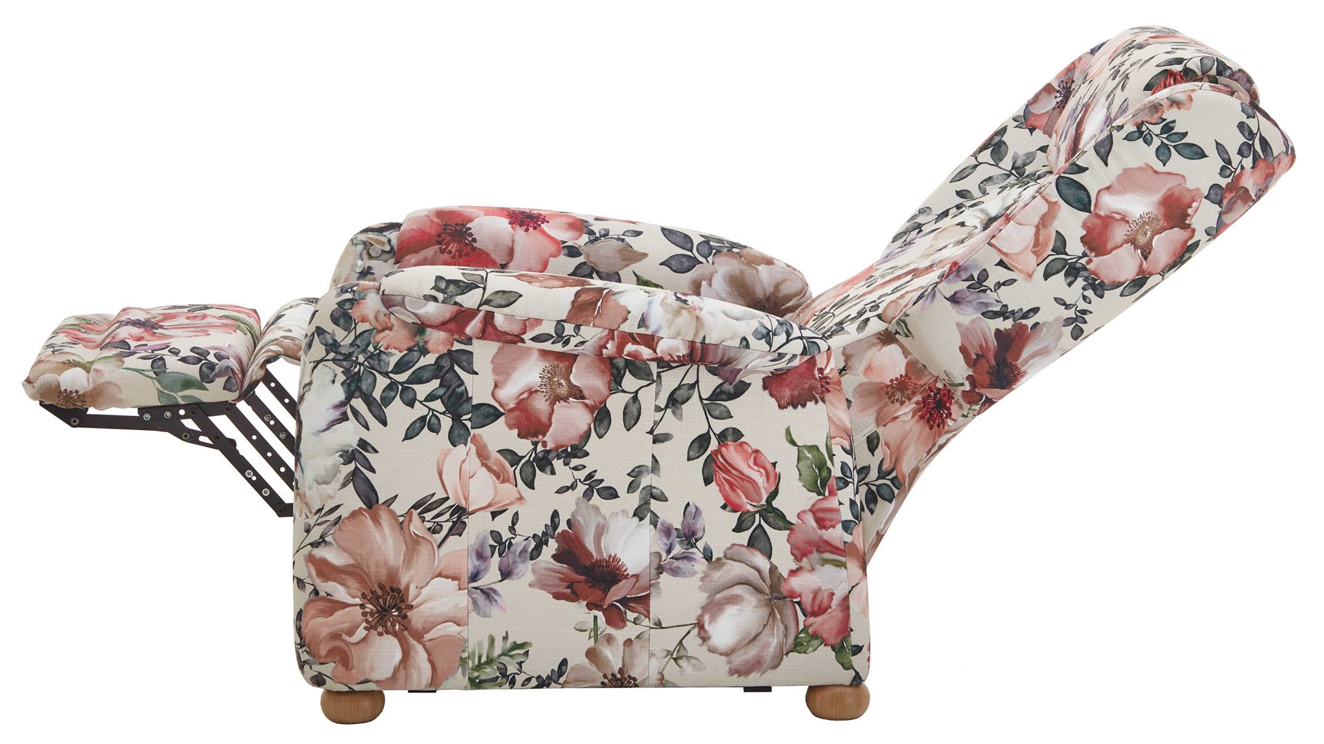 Dank der legeren Federkernpolsterung auf hochwertiger Wellenunterfederung im Sitz sowie der Schaumpolsterung im Rücken sitzen Sie auf dem floralen Ohrenbackensessel der Ergonomiegröße M sehr bequem. Dazu tragen auch die verschiedenen Funktionen bei. Der TV-Sessel bietet die manuelle Kopfpolsterverstellung mit Rastbeschlag und Rückholfeder. Hinzu kommt die einmotorig-elektrische synchrone Verstellung der Rückenlehne und des Fußteils von der Sitz- zur TV- bis zur Liegeposition. Im komplett ausgefahrenen Zustand beträgt die Liegelänge ca. 176 cm. Mit der praktischen Fernbedienung lässt sich der Komfortsessel einfach steuern. Zur Aufbewahrung dieses nützlichen Zubehörs und auch von Zeitschriften verfügt das Möbel über eine Seitentasche. Funktionsstark abgerundet wird der Sessel durch die Aufstehhilfe.