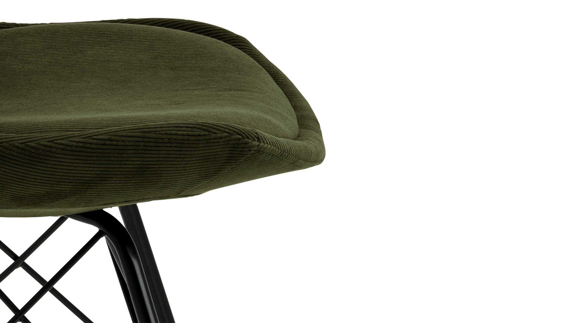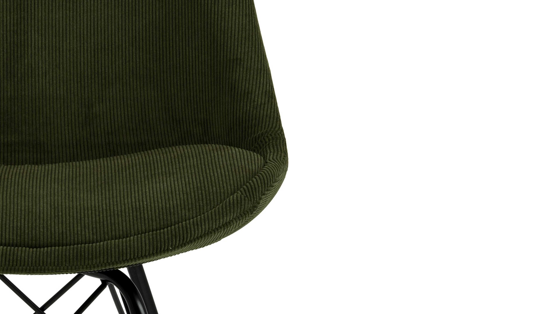 Der Polsterstuhl Eris verkörpert klassische Eleganz. Als stabile, dabei aber wunderbar filigran designte Basis fungiert ein mattschwarz pulverbeschichtetes Stahldrahtgestell. Darauf befindet sich eine olivgrüne Sitzschale aus robustem Kunststoff. Sie ist rundherum mit Feincord bezogen, ebenfalls in Olivgrün. Der angesagte Feincordbezug überzeugt sowohl qualitativ als auch optisch und haptisch.