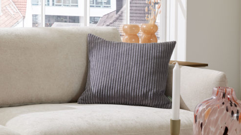 Kissenbezug aus mattem Samt mit umlaufender Steppnaht und verdecktem Reißverschluss