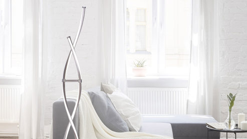 • Die Abbildung zeigt ein Wohnbeispiel, welches auch Dekoration sowie separat erhältliches Zubehör enthält. Im Lieferumfang enthalten ist eine Stehleuchte.