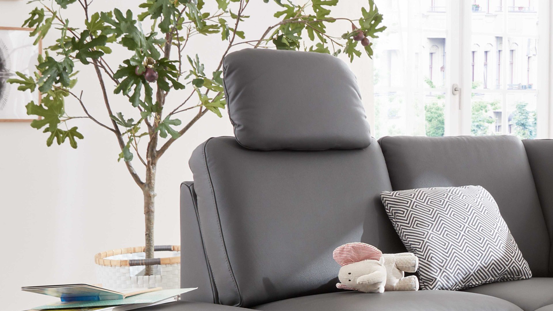 Die Premium-Kopfstütze PKS ist passend zur Eckkombination in einem anthrazitfarben pigmentierten Leder bezogen. Sie strahlt klassische Eleganz aus und bringt tiefgründiges Flair ins Wohnzimmer. Durch die erstklassigen, hervorragend verarbeiteten Materialien ist die Kopfstütze aus der Serie MM-PN1080 eine komfortable Ergänzung. Der pigmentierte Lederbezug ist pflegefreundlich und leicht zu reinigen.