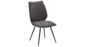 Der Polsterstuhl Navarra kommt in einem ausdrucksstarken Design: Sitz- und Rückenfläche weisen eine dekorative Rautensteppung auf. Sie werden rundum von einem Stoffbezug im Antiklook umhüllt. Der Bezug in gedecktem Anthrazit trifft auf ein ebenfalls anthrazitfarben lackiertes und konisch zulaufendes Rundrohrgestell.