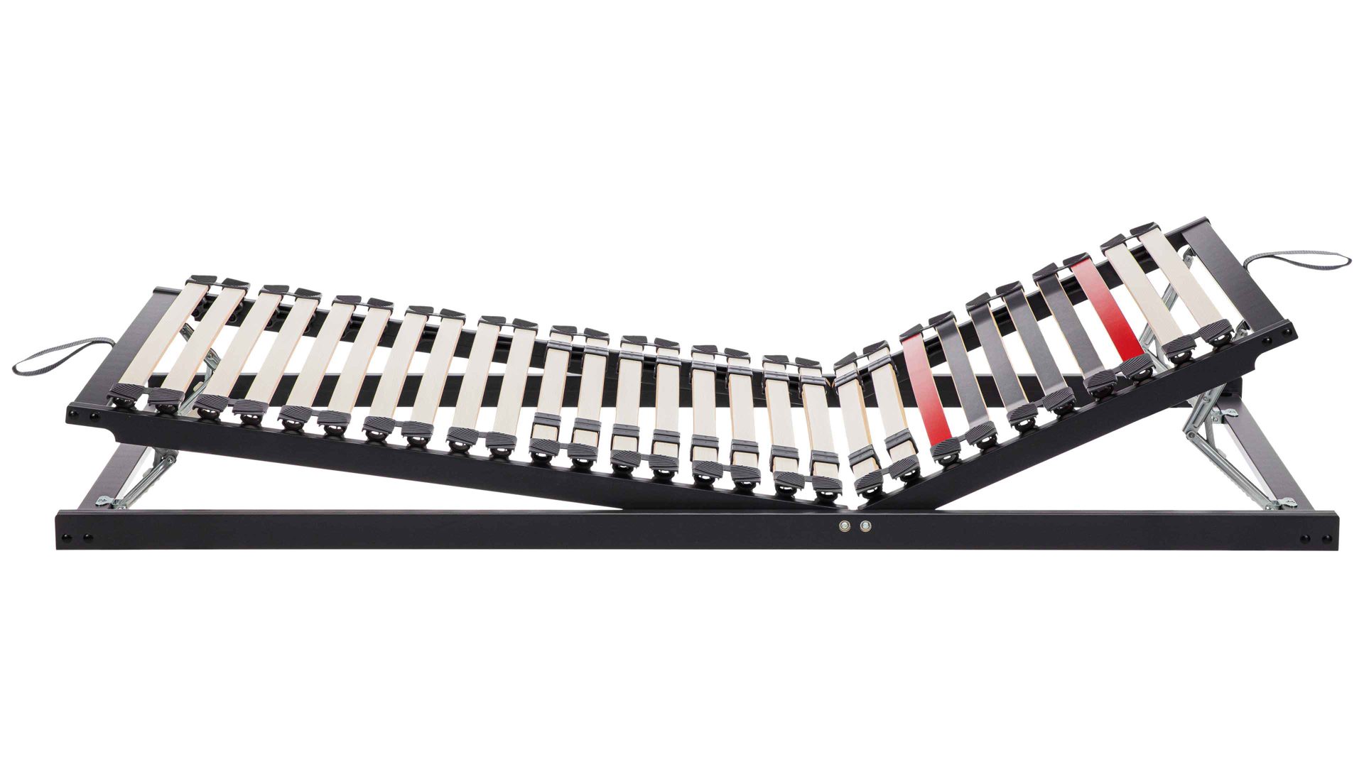 Die elastischen Federleisten sind in langlebigen Hightech-Kappen gelagert, die dauerhaft flexibel bleiben und geräuscharm arbeiten. Verstärkte Querleisten mit Winkelsicherung sowie hochfeste Gelenkschrauben aus Stahl erhöhen die Stabilität zusätzlich und sorgen für eine dauerhaft sichere Konstruktion.