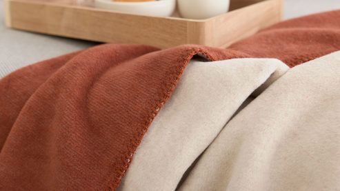 Das rotfuchs- und federfarbene Mischgewebe verleiht der Decke eine natürliche, edle Ausstrahlung, die sich harmonisch in verschiedenste Wohnstile einfügt. Besonders charmant wirkt die dekorative Häkelsaum-Einfassung, die der Decke eine feine handwerkliche Note verleiht.