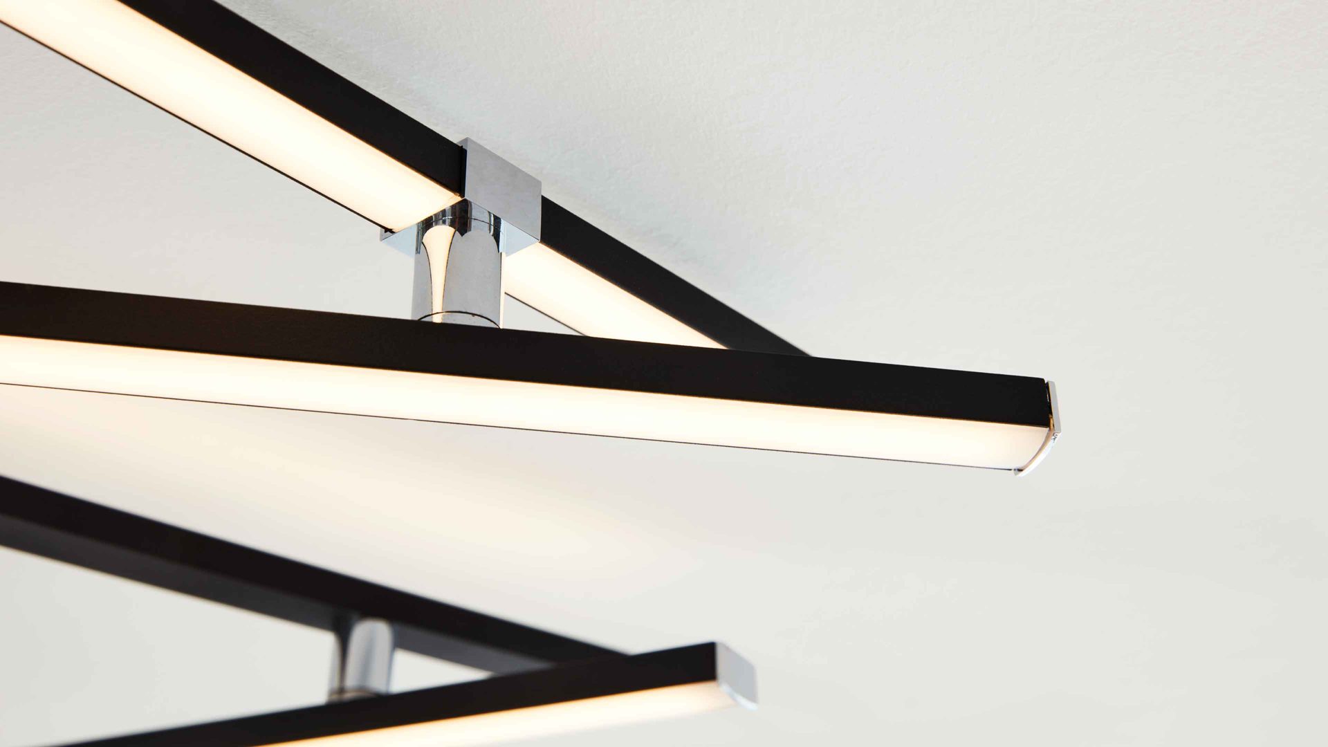 Die außergewöhnliche Deckenleuchte aus der Interliving Leuchten Serie 9339 überzeugt mit ihrem abstrakten Design und der gelungenen Materialkombination aus mattschwarzem Metall, glänzendem Chrom und weißem Acrylglas. Die markante Formensprache verleiht ihr einen modernen, eleganten Charakter und macht sie zu einem echten Blickfang in deinem Zuhause. Mit Maßen von ca. 345 x 7 x 58 cm (LxHxT) eignet sie sich ideal für Wohn-, Schlaf- oder Arbeitsbereiche und bringt stilvolle Helligkeit in jeden Raum.