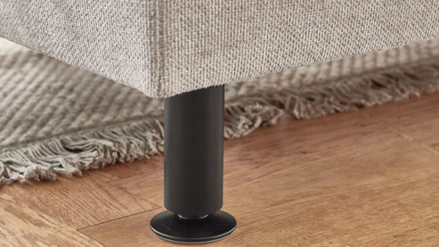 Stilvoll abgerundet wird der durch die puristisch mattschwarzen Metallfüße Z002-M01.
