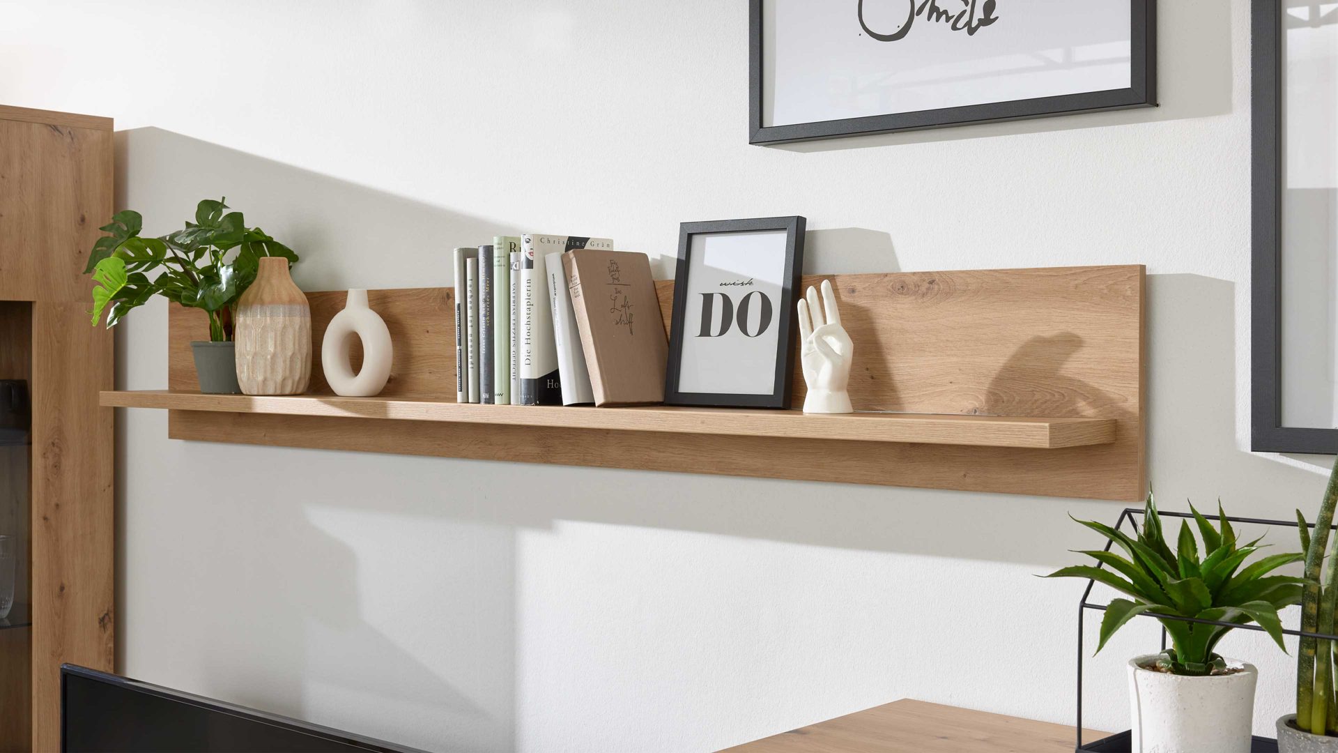 Dank der kompakten Maße von ca. 120 x 25 x 19 cm (B/LxHxT) bietet das Wandboard ausreichend Platz für Pflanzen, Bilder, Bücher oder persönliche Erinnerungsstücke – und bringt gleichzeitig Ordnung und Atmosphäre an die Wand.