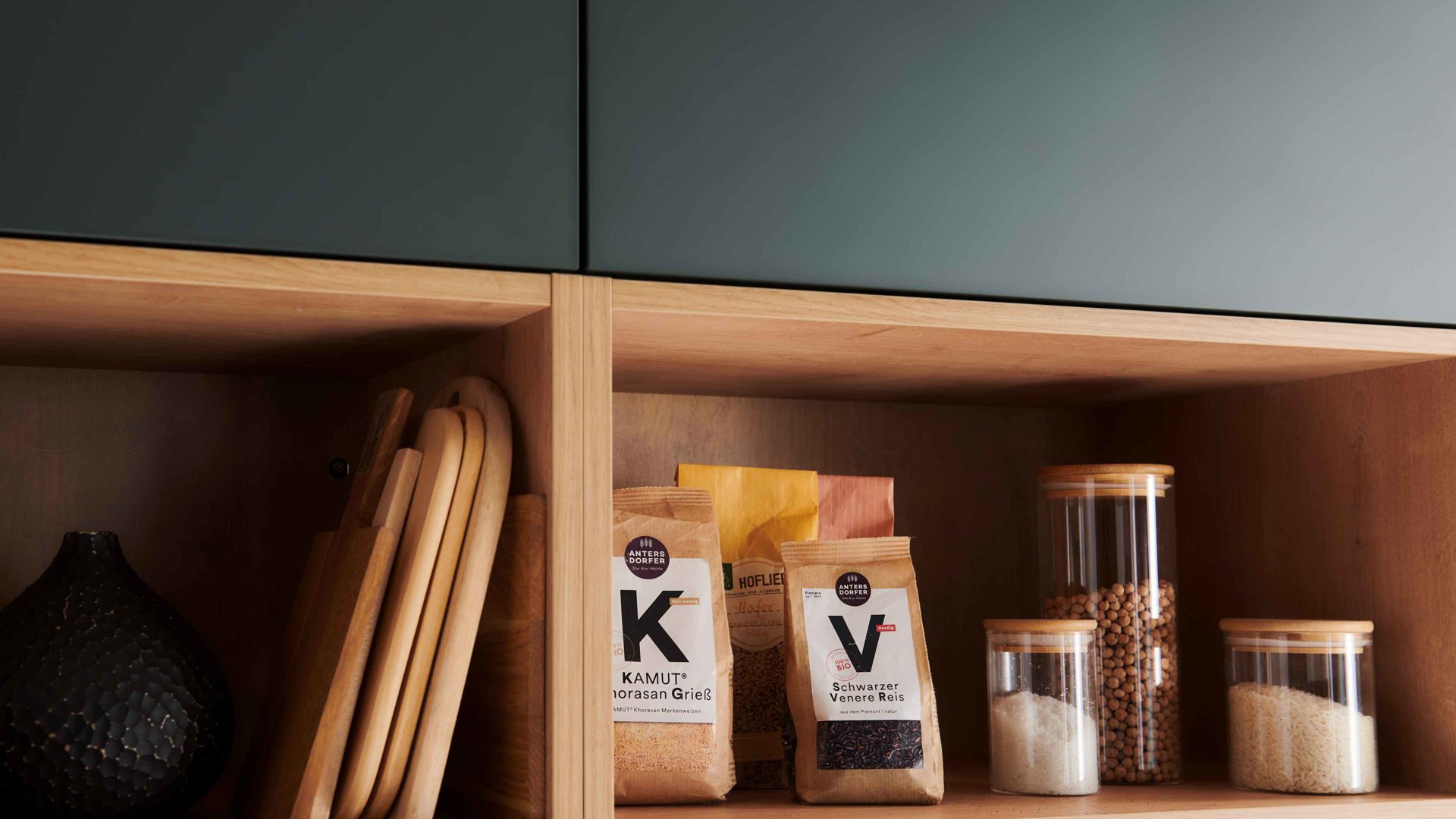 Das Tellerregal sowie weitere dargestellte Einrichtungsgegenstände sind separat gegen Mehrpreis bestellbar.