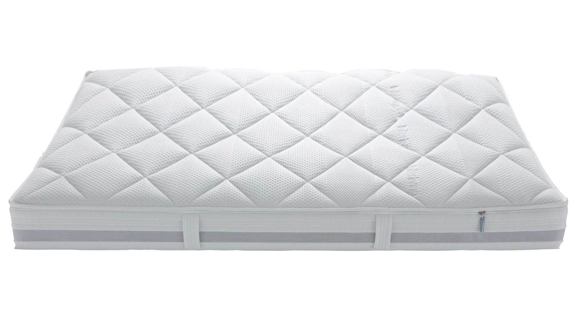 Im Kern arbeitet ein 7-Zonen-AQUAPUR®-Taschenfederkernsystem mit rund 1.000 einzeln verpackten Federn (bezogen auf ca. 100 x 200 cm). Diese sorgen für eine besonders präzise Körperanpassung und gezielte Druckentlastung – von der Schulter bis zum Becken. Ergänzt wird das System durch eine offenporige AQUAPUR®-Schaumplatte unter dem Federkern, die die Luftzirkulation fördert und für ein frisches, atmungsaktives Schlafklima sorgt.