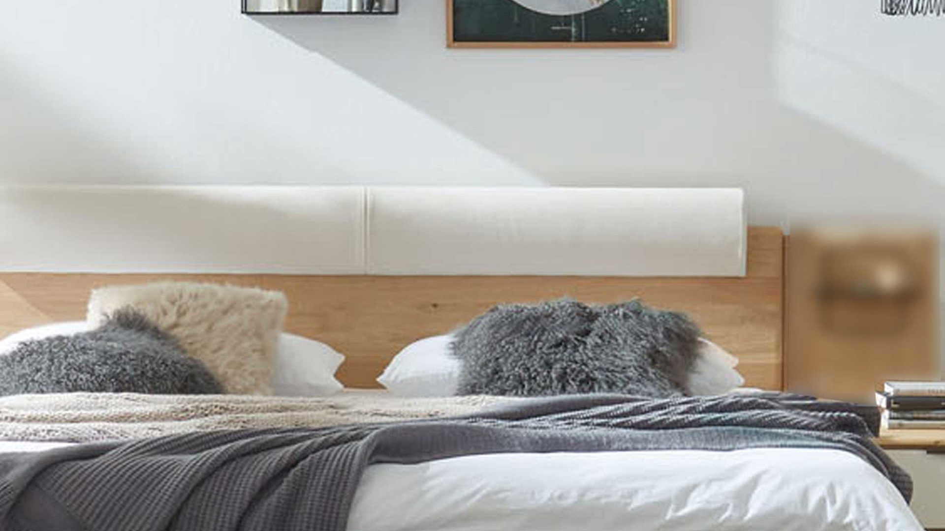 Natürlich schlafen mit Komfort – das Bettgestell mit cremefarbenen Kopfpolstern aus der Interliving Schlafzimmer Serie 1015